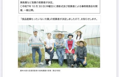 「食品産業もったいない大賞」は、(公財)食品等流通合理化促進機構が主催、農林水産省…